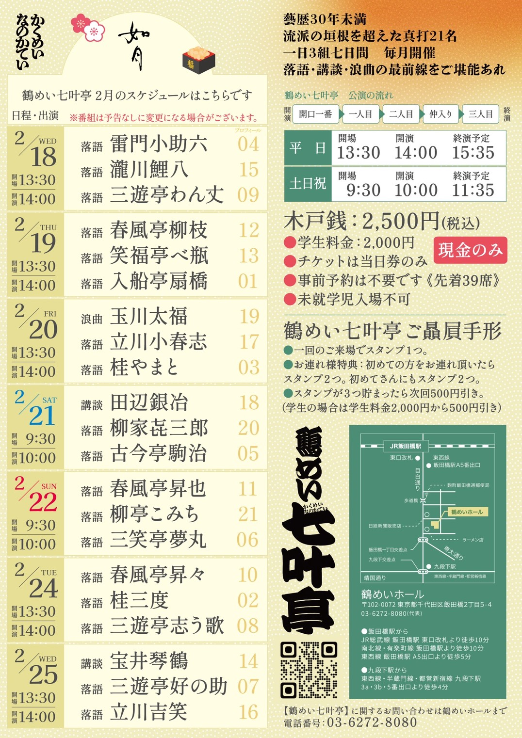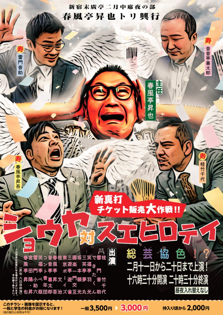 笑福亭べ瓶、三遊亭志う歌、三遊亭好の助、立川小春志、春風亭昇也